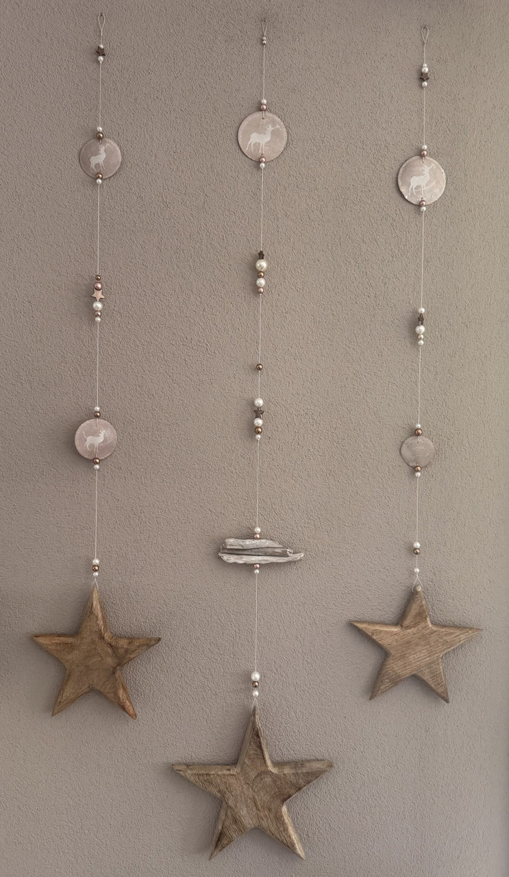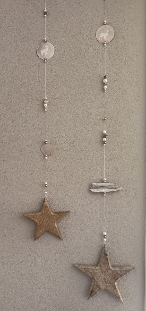 Sternenhänger Holz gross mit Schwemmholz und Muschelblatt Hirsch